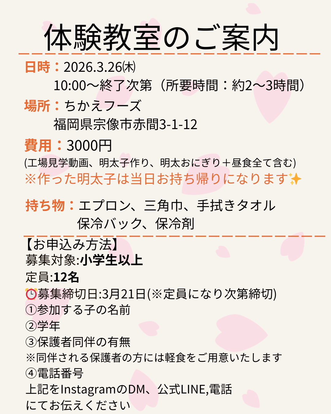 26日㈭に明太子づくり体験教室